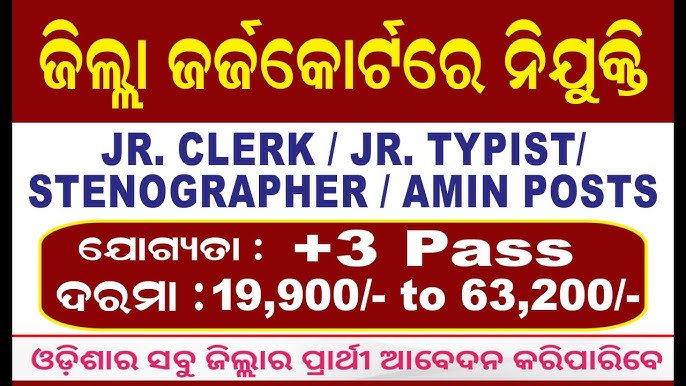 The recruitment is district-wise, and candidates from all districts of Odisha can apply. Posts include Peon (Class-IV), Clerk, Junior Typist, Driver, Process Server, and Office Assistant depending on the district notification.